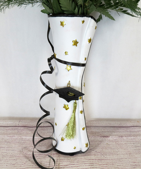 Send a bouquet to honor their hard work and success. This arrangement features rich red roses, symbolizing love and admiration, artfully arranged with delicate white baby's breath and fresh greenery. A cheerful "Congrats" balloon adds a festive touch, making it the perfect gift to celebrate their milestone achievement. Presented in a decorative diploma vase, this bouquet is sure to make their graduation day even more memorable.