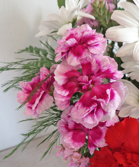 Our Follow Your Heart Bouquet is a playful yet passionate mix of Valentine’s Day favorites. Featuring red roses, pink gerbera daisies, and white daisies, this arrangement is accented with red carnations and purple statice for a full, garden-fresh look.