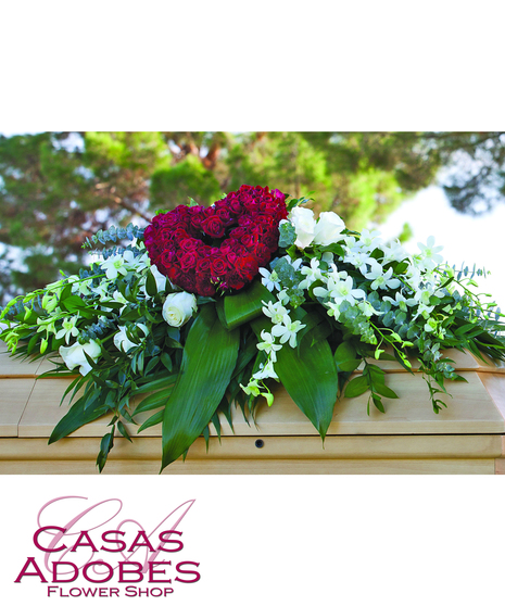 Whether it's an elegant all-white spray, a bright swath of tropical flowers, or a classic collection of roses, here you'll find just the right casket flowers to celebrate the life of a loved one lost. Casas Adobes Flower Shop offers same-day delivery of casket flowers to local Tucson funeral homes and churches. Browse our selection or give us a call for personalized assistance. Looking for something else? Browse our entire catalog of sympathy flowers here.